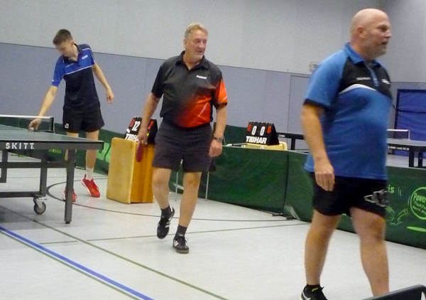Uwe von Oesen (Mitte) siegt im ersten Einzel klar. |