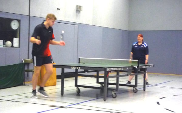 Ersatzspieler Ben Schlickowey spielt stark auf, muss sich aber gegen Aileen Kallenberg knapp geschlagen geben. Im zweiten Einzel ist er aber siegreich. |