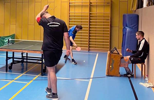 Die Einzel begannen mit einer kleinen “Sensation”. Behrmann siegte 3:1 gegen Buck – für ihn der erste Einzelsieg, für seinen Gegner die erste Saisonniederlage. |