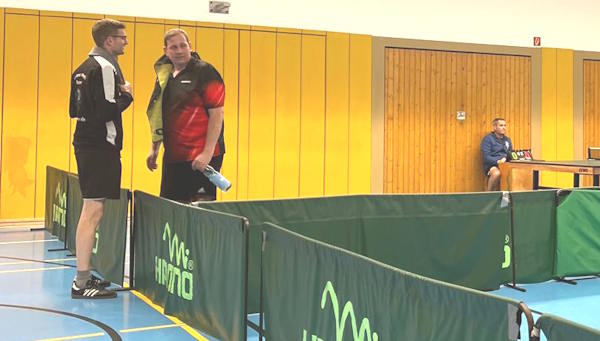 Das Spiel ging erfolgversprechend los: Das neu formierte Doppel Jens Behrmann/ Tim Decker holte ein überraschendes 3:1 gegen Buck/ Wallner. |