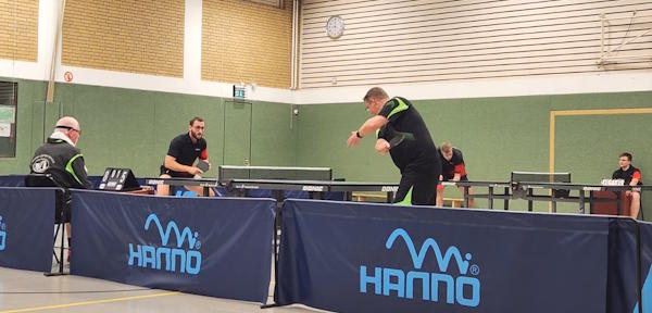 Henrik Schöne unterlag in einem engen Duell knapp in vier Sätzen gegen Simon Uetrecht, während Rüdiger Mehnert und Mirko Adam im unteren Kreuz gegen Ben Schlickowey und Benjamin Bär durch zwei weitere Einzelsiege für die erste kleine Vorentscheidung sorgten (4:2). |