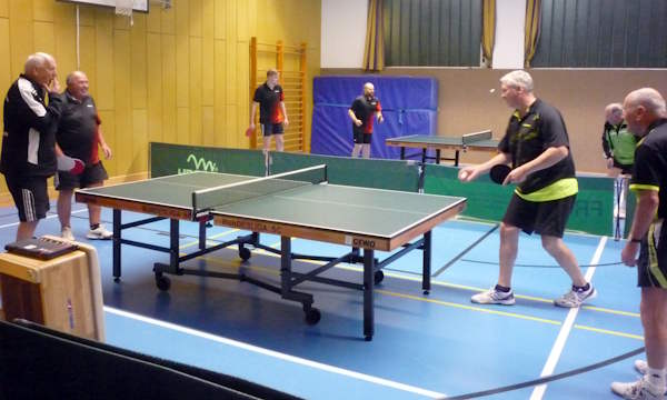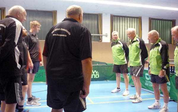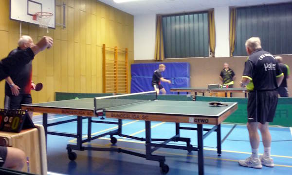 Bei Ben Schlickowey (2. von links) läuft es im ersten Einzel gut, bei Bernd Matuttis (links) leider nicht. |