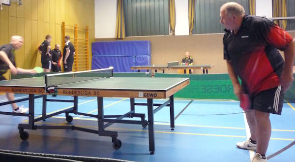 Zu Anfang sah es für die Mannen um Büttels Teamchef Ben Schlickowey sogar sehr gut aus. Beide Doppel gingen an die Heimmannschaft, und der Teamchef legte mit einem 3:1-Sieg gegen Zeichner zur 3:0-Führung nach. |